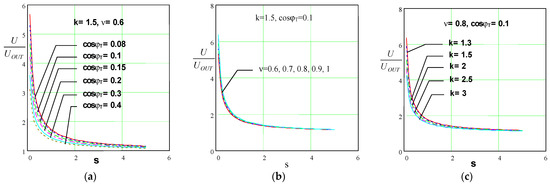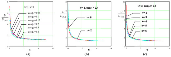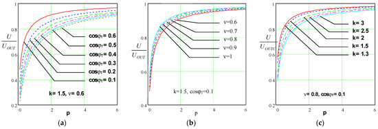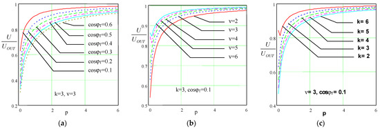 Figure 8 shows the dependence , with parameters k, ν, and cosφT, when operating a resonant inverter in soft commutation mode.