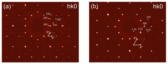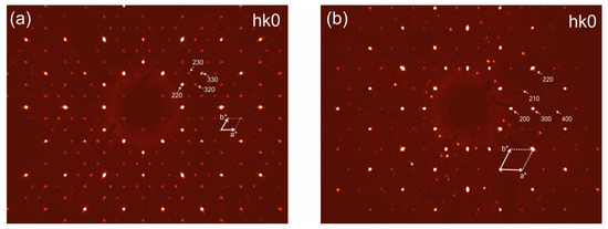 These changes can clearly be identified through the analysis of the reconstructed reciprocal space obtained for (hk0) sections (Figure 2). The relations between unit cells are shown in Figure 3.