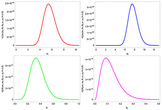 Where the hyperparameters and , are supposed to be known and non-negative. By using the prior distribution for , , , , and , we obtain the joint prior distribution as follows: