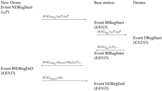 We formalize a registration process in which participants undergo mutual authentication. During this phase, the IoD participants and the new drone securely generate a new key.