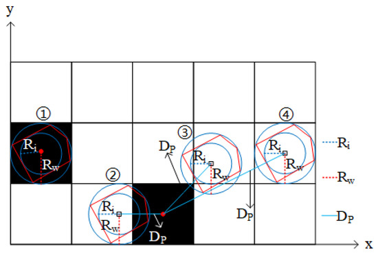 In Equation (3), is the grid coordinate of the obstacle center grid; is the grid coordinate where the robot occupies the center of the grid.