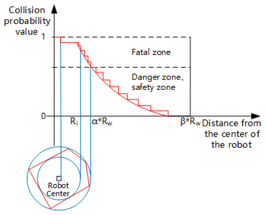 According to the collision probability function model, the probability of collision between robots and obstacles can be summarized as shown in Figure 3.