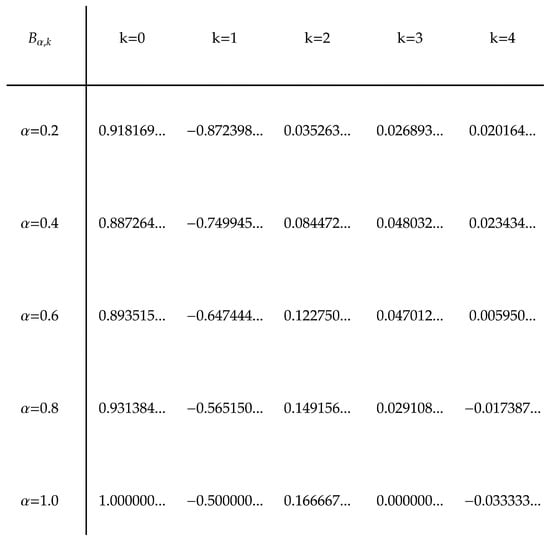 The Bernoulli numbers with fractional indices for are reported in Figure 2.