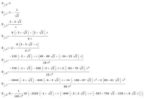 The Euler numbers with fractional indices for , and with , are shown in Figure 6.