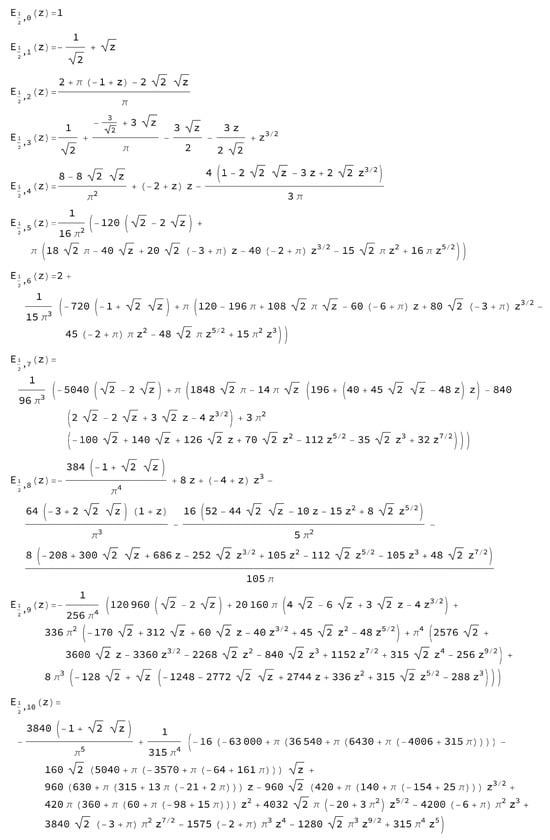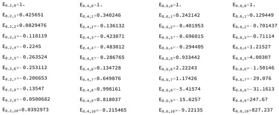 In the particular case when , we find the first ten fractional Euler polynomials, which are reported in Figure 8.