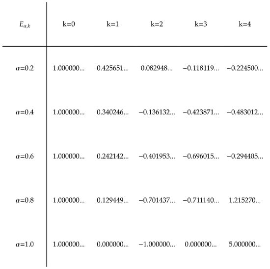- Caratelli, D.; Ricci, P.E. An Introduction to Fractional Exponential Functions and Applications. 2023; submitted. [Google Scholar]