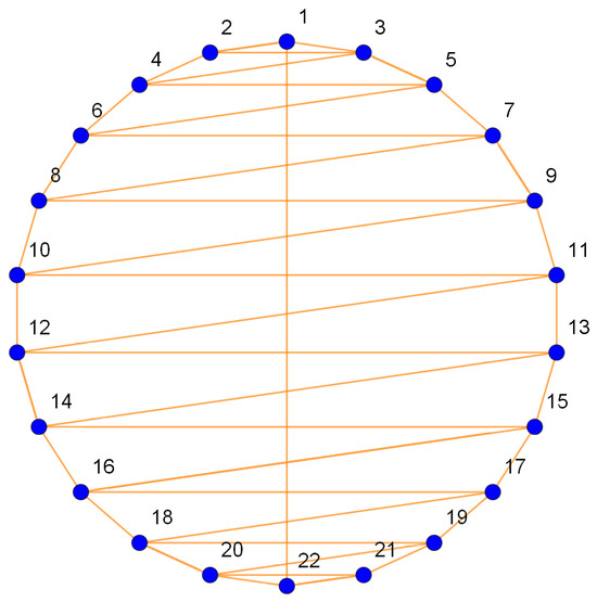 A graph is called a Toeplitz graph if its vertex set is and two vertices are adjacent to each other if their absolute difference belongs to S, where (). The Toeplitz graph for is shown in Figure 2.
