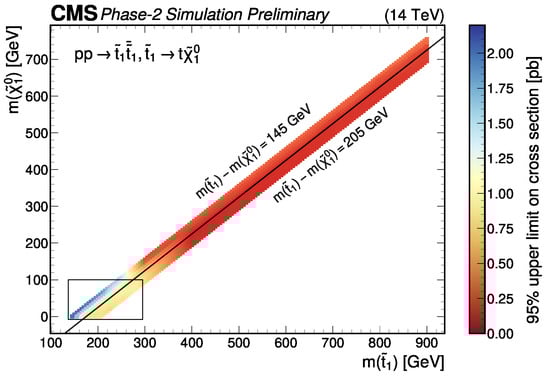 A projection of the expected sensitivity for the discovery of top squarks all the way up to 800 GeV [121].