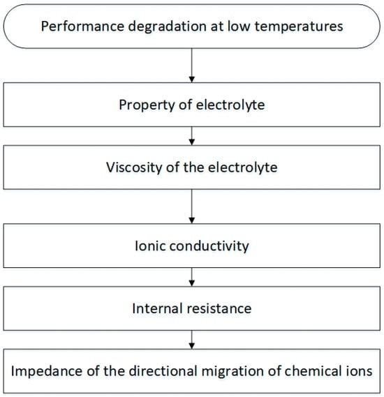 Conversely, Thomas E.V. et al. [26] embarked on a meticulously designed accelerated aging study, thoroughly exploring the interplay between aging duration, temperature, and state-of-charge (SOC) in shaping lithium-ion cell performance. Through an extended monitoring process involving a hybrid pulse power characterization test at low current regimes over a 44-week period, a notable empirical model of power fade was established. This model comprehensively encapsulated two simultaneous degradation processes—one rapid and temperature-accelerated, and the other proceeding at a slower pace influenced by temperature and SOC. Addressing temperature-related challenges, Smart M.C. et al. [27] systematically explored the profound impact of electrolyte composition on low-temperature lithium-ion cell performance. By carefully selecting ester solvents for incorporation into multi-component electrolyte formulations, the study leveraged favorable physicochemical attributes such as low viscosity, high permittivity, and low melting points. The compatibility of these formulations with diverse electrode compositions, including LiCoO2 and LiNiCoAlO2, was demonstrated. The study also delved into lithium intercalation and deintercalation ease within Li-carbon cells at varying temperatures, employing conventional electrochemical techniques to uncover insights into surface film attributes.
