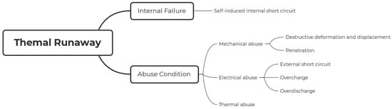 Thermal runaway occurs as a result of internal reactions within a battery, causing a rapid increase in internal temperature. This temperature rise, in a cyclic manner, accelerates reactions, creating a loop that further intensifies the temperature increase. This unchecked cycle of reactions and rising temperatures can lead to the generation of smoke, the ignition of fires, and, in extreme cases, even explosions. Table 3 provides an inclusive overview of various studies that delve into the complexities of the thermal runaway mechanism in lithium-ion batteries. The rise in pressure and temperature within the battery is driven by exothermic reactions occurring across the cathode, anode, and electrolyte. In a bid to ensure safety in commercial applications such as electric vehicles, many countries have established mandatory standards that batteries must meet before entering the market. However, it is important to emphasize that despite the existence of these standards, incidents related to thermal runaway still occur. These incidents do not arise due to a lack of standards but rather stem from inherent malfunctions and adverse conditions that batteries might encounter throughout their lifecycle in specific applications (as illustrated in Figure 5). It is vital to acknowledge that while internal malfunctions are possible, their likelihood is typically low [64,65].