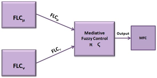 In this paper, we are proposing an extension to the concept of fuzzy control by utilizing the MFL concept, which would be useful when the knowledge of several experts is considered in designing the fuzzy controllers. Of course, when several experts are considered, there exists the possibility of contradictory knowledge, and, in this situation, mediative fuzzy logic would be helpful in modeling this contradictory part. For this reason, we propose the following architecture of the mediative fuzzy controller (Figure 1), where we consider two fuzzy controllers (one for membership and the other for non-membership), and then the aggregation of the outputs is performed with Equation (7) to obtain the final output.