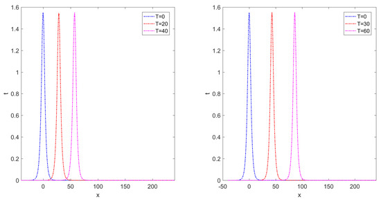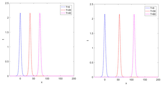 When , Equation (6) converts to the generalized Rosenau–RLW model. For the case of , and Equation (6) becomes to the usual Rosenau–RLW model. For the special case , and Equation (6) corresponds to the usual Rosenau–Kawahara model and for , Equation (6) becomes the generalized Rosenau–Kawahara model.
