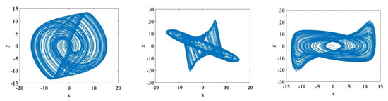 The chaotic attractors plot from Equation (3) when and .