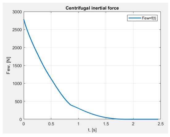 In the car’s motion phases and the subsequent rotation with the variable angular velocity vector, a variable magnitude of centrifugal inertial force arises. The magnitude of the inertial force generally depends on the three-component direction of the vector , which is the angular velocity vector. Due to the small magnitude of the angular velocity vector around its longitudinal and transversal axis, the investigation has been carried out without a vehicle rollover but rotating around the vertical axis passing through the center of mass of the car coordinate system, symmetrically located with respect to the car body. The magnitude of the centrifugal inertial force has the following form: