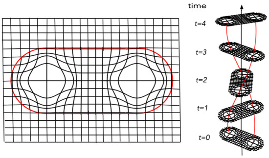 If we now let f be a non-zero, sufficiently differentiable one-variable function with support in and , we get a metric representing a rotating string similar to the one in Figure 3 by letting