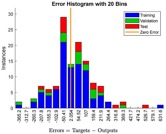 The error analysis data of the Young’s modulus using the machine learning method. The abscissa represents the error interval, and the ordinate represents the amount of data in the error interval.