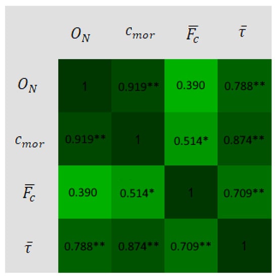 Pearson correlation coefficient matrix results. * Correlation is significant at the 0.05 level. ** Correlation is significant at the 0.01 level.