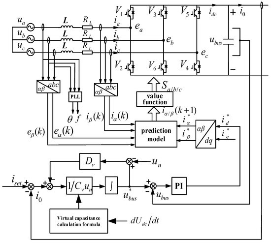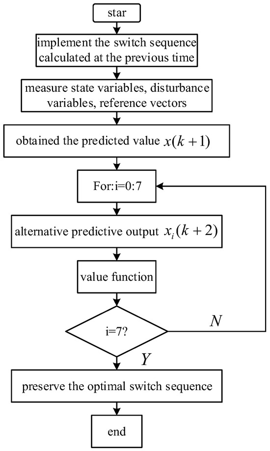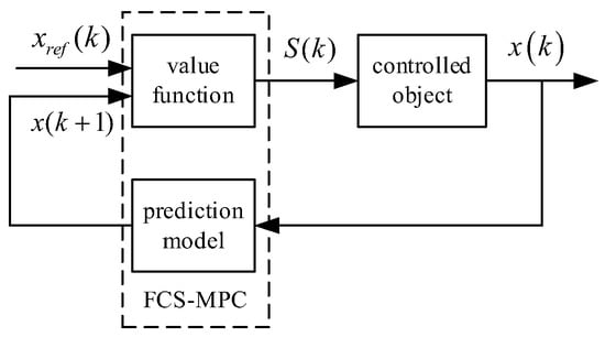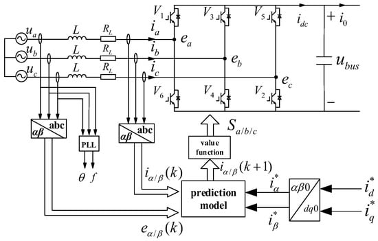 where and are the reference currents. By comparing the 8 groups of function values obtained by Equation (11) and taking the minimum value , a group of switch sequences , and satisfying the minimum value of the value function are applied to the converter. The current inner loop control block diagram can be obtained as shown in Figure 7.