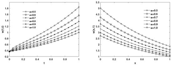 The exact solution is []. Note that to compare the approximate solution with the exact solution, 100 terms of the aforementioned expansion are considered in this paper.