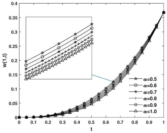 where is assumed to be continuous, and indicates the order of the fractional derivative in the Caputo sense. We assume that the unknown solution is a sufficiently smooth function. It is obvious that when , then the desired equation turns into the classical gas dynamic equation. Also, it is worth mentioning that the dimensionless form of the equation is considered, and we can extend the presented method to any desired interval.