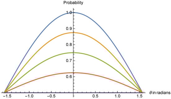 so goes to . In the Bloch sphere, this is a rotation of around the axis. It is clear that (34) is satisfied. The membership functions then change as