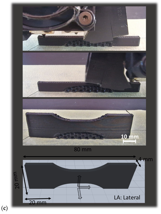 Dog-bone geometries were printed with the typical dimensions 80 × 20 × 4 mm3, where the gauge width and length were 10 mm and 20 mm, respectively.