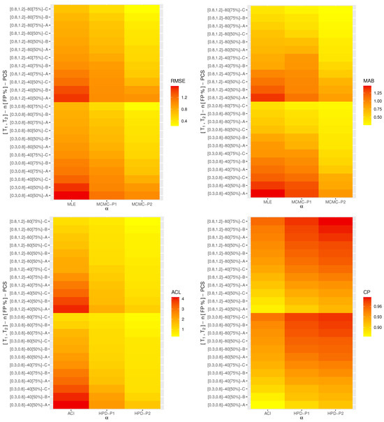 The ACIs of the unknown parameters and can be obtained, respectively, as and , where is the percentile of the standard normal distribution, and and are obtained from (11).