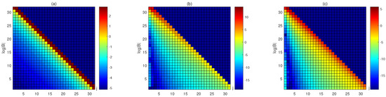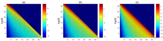 The elements of matrix B in with , and in (a–c), is taken as , respectively.