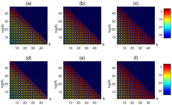 The elements of the coefficient matrix with , , where (a–c) are those of in , and , , , (d–f) are those of in , and , , , respectively.