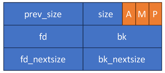 In glibc (ptmalloc) [35], whether it is a heap block in use or a heap block after release, the heap block structure used is rough, as shown in Figure 1.