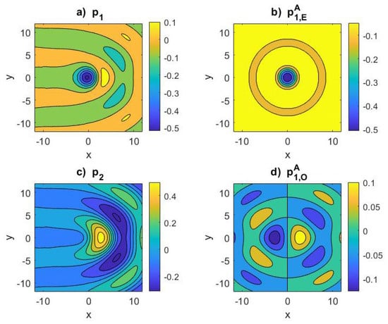 representing even and odd parts of the streamfunction, and producing antisymmetric and symmetric zonal velocity, respectively. Here, the notations for the A- and S-components follow those described by Brion et al. [41] and Davies et al. [42,43], which are opposite relative to those described by Reznik [40]. For example, the A-component represents a circular symmetric vortex (Figure 1a) and a meridionally propagating A-dipole (Figure 1b), while a zonally propagating S-dipole is described by the S-component (Figure 1c).