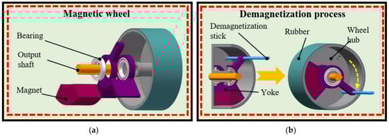 Magnetic wheel structure: (a) constituents; (b) demagnetization process.