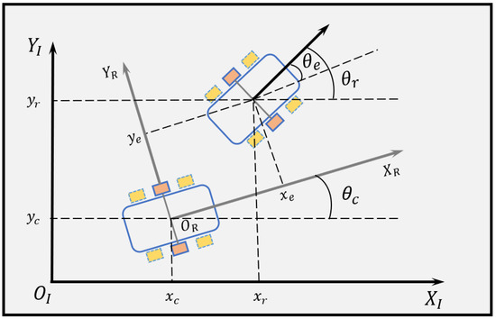 According to the geometric relations in Figure 8, the robot’s positional error within the coordinates can be obtained as []