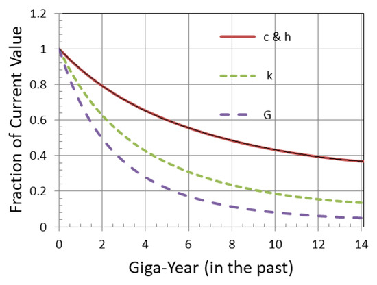 and determined by substituting in Equation (11) with . The limitation of this form is that can decrease in the past at most by a factor of (), and can decrease by a factor of (for positive within the region of their applicability).