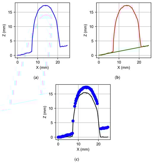 - Once the tilt is corrected by means of an interpolation, a greater number of points in the cloud are extracted by means of a Piecewise Cubic Hermite Interpolating Polynomial (pchip) interpolation because it adjusts the flat areas more adequately than the interpolation by splines (see Figure 3c).