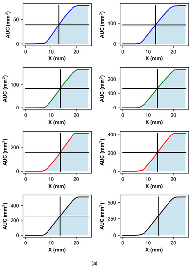 The function has a paraboloid shape and its area under the curve is described by an S-shape typical of sigmoid functions, as it can be seen in Figure 4a. The objective is to find the point xi where the AUC(xi) is equal to half the total area: