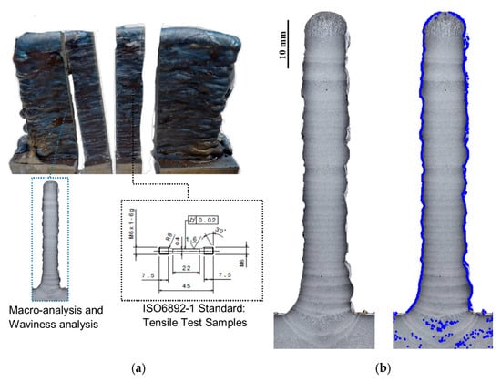 Mechanical tests on the specimen manufactured by WAAM: (a) extraction of the specimens and (b) calculation of wall geometry.