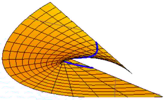 Here, C(2,3), C(2, 3, 4) = , and . The graphs of cuspidal edge and swallowtail can be seen in Figure 1 and Figure 2.