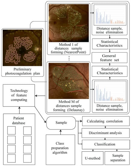 These characteristics form a basis for evaluating the uniformity and balance of the coagulation pattern. Alongside statistical characteristics, an important feature is the number of laser impact points in the coagulation plan. As an extra feature, the number of local regions in the coagulation pattern may be used. In total, 26 features were selected and then analyzed using an in-house technology of intelligent data analysis (Figure 5).