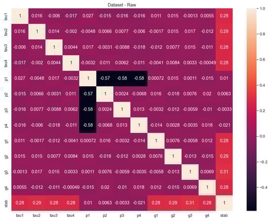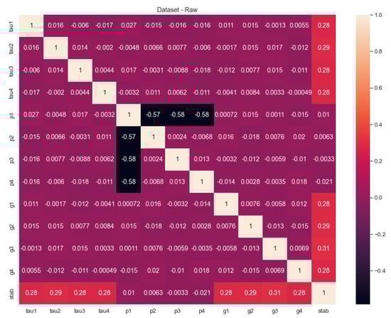 In Figure 6, we can see the correlation values of the features. To provide a clear understanding of Figure 6, we can investigate Table 5 with sorted values of the correlation values of the augmented dataset. As the correlation values point outs the most relevant four features with the “stab” are g3, g2, g4, and tau4. In the aug dataset, the effect of g features is higher than in the raw dataset. The feature importance analysis in the next sections are going to show proof of these values.