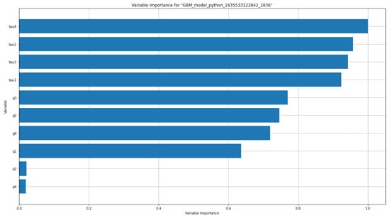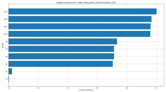 Firstly, the variable importance graphics are demonstrated. The variable importance graphic states the relative importance of the most important variables in the models. As it is mentioned before in the feature correlation matrices, we can see that the highly correlated features with the response “stab” takes to the front here, too. Figure 17 and Figure 18 show the detailed bar graphs of variable importance values of the raw dataset and aug dataset for the proposed GBM model, respectively.