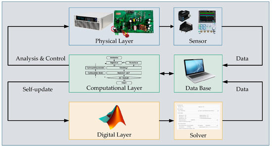 As shown in Figure 2, the physical layer is the phase-shift full-bridge current doubling rectifier DC-DC converter. The digital layer is a digital copy of the physical layer, which refers to a converter with the same structure built in the simulation software. The computational layer is the bridge between the physical layer and digital layer. In the computational layer, running data collected from the other two layers is comprehensively analyzed, with the analysis results driving the digital layer to update itself, while the condition of the physical layer is disclosed, and the related control method is proposed. The establishment of these three layers is described in detail as follows.