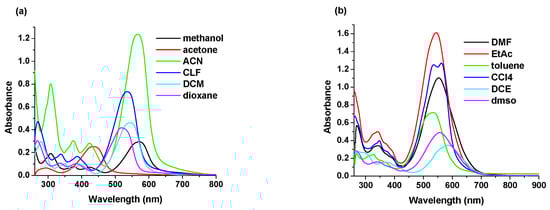 - Homocianu, M.; Airinei, A.; Dorohoi, D.O. Solvent effects on the electronic absorption and fluorescence spectra. J. Adv. Res. Phys. 2011, 2, 011105. [Google Scholar]