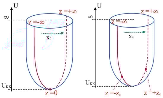 Here, the coordinate z takes both positive and negative values on different branches of the brane. The boundary is at and the tip of the cigar at . See Figure 1 for illustration.
