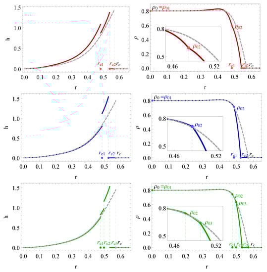The double-layer solution depends on four parameters at fixed ; there is one additional parameter from the location of the extra discontinuity with respect to the single-layer solution, and as the solution for h in the second interval is independent of the solution in the first interval, there are two additional integration constants from the solution of h. Finally, the generalization to triple-layer solution or even to a solution with a higher number of flavors is straightforward. One only needs to modify the piecewise solution for the charge density with addition of new intervals. This will introduce three new parameters for each interval.