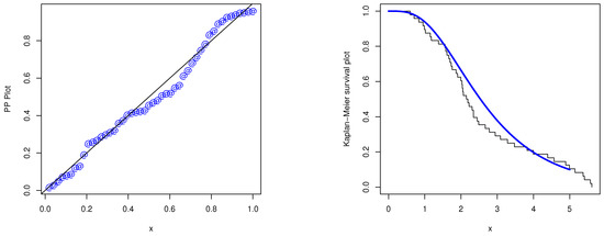 The PP plot and the Kaplan–Meier survival function of the APMW-W distribution.
