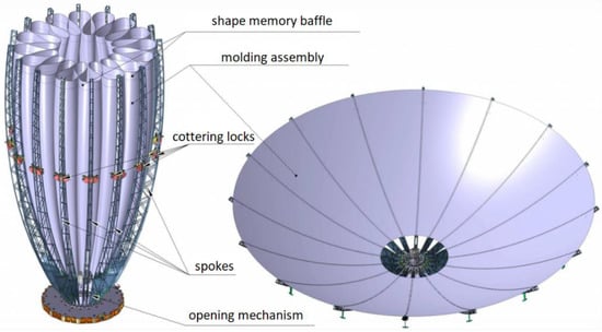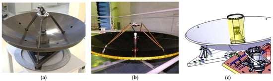To solve this problem, engineers use composite materials (Figure 3) [258] and transition to a grid of wires (Figure 4) [259]. For example, at the Institute of Computer Technologies, one of their projects studied the properties of orbital and ground antennas from composite materials working in the bands of 18.2–21.2 GHz and 42.5–45.5 GHz. Antennas of such frequency ranges should possess simultaneously high geometrical stability, stability to temperature impacts, raised rigidity, and small mass. Computer simulation played a very important role at every stage in this project and allowed for parametric optimization of antenna designs. Modeling and optimization of these types of antennas, including those composed of thin meshes, remains a non-trivial task. In this case, the best simulation results can be achieved only using electrodynamic modeling in the range of a large number of parameters, which is often hampered by high computational cost requirements. Therefore, it is important to identify and study new approaches to improving the efficiency of such antenna modeling.