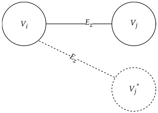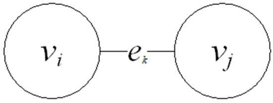 The threat model proposed in this paper is based on the information flow model. This model implies a description of the system using graph theory. Each information transmission channel in the system is represented as an elementary information flow, which includes three elements: a source, an information transmission channel, and a receiver. The elementary information flow is symmetrical and bidirectional, which means that in general there is no division of vertices into sources and receivers in the diagram. Using the following notation: V is a set of information carriers (a set of graph vertices), E is a set of information transmission channels (a set of graph edges), and by comparing any two elements from V and one from E, we get an elementary information flow in the form of an undirected graph with two vertices (Figure 1) [37].