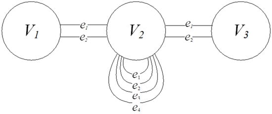 The result of combining all the above graphs will be an undirected multigraph (Figure 2) [37], which will be a model of information flows when accessing electronic information resources. It should be noted that the connections between each pair of vertices are symmetrical are bidirectional. When determining each individual elementary information flow, the direction of information movement in it does not matter, because we will be interested only in establishing a connection and transmitting information.