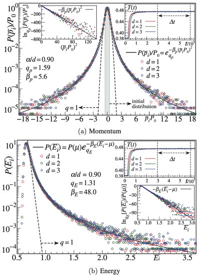 - Latora, V.; Rapisarda, A.; Tsallis, C. Non-Gaussian equilibrium in a long-range Hamiltonian system. Phys. Rev. E 2001, 64, 056134. [Google Scholar] [CrossRef] [PubMed]